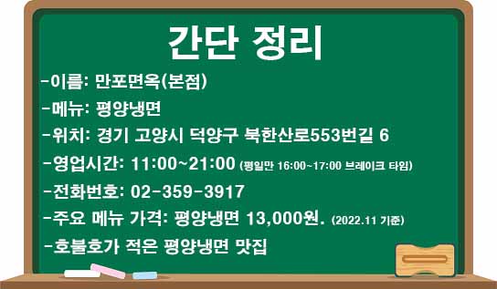 제가 방문한 곳은 고양시 덕양구에 있는 만포면옥 본점입니다.