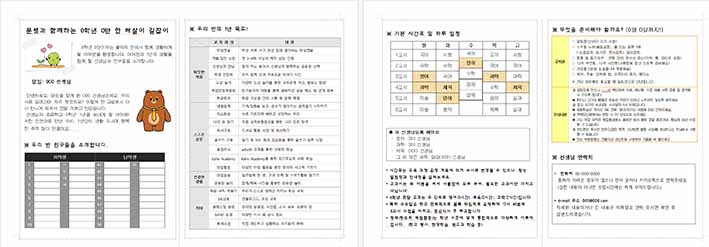 4페이지에는 준비물 및 주의사항 연락처를 넣었습니다.