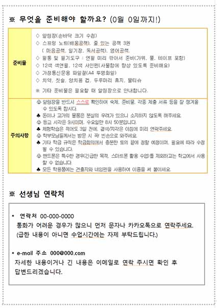 [새학기 준비] 학급 안내장 (파일 첨부)