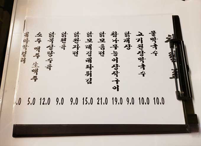 메뉴판입니다.