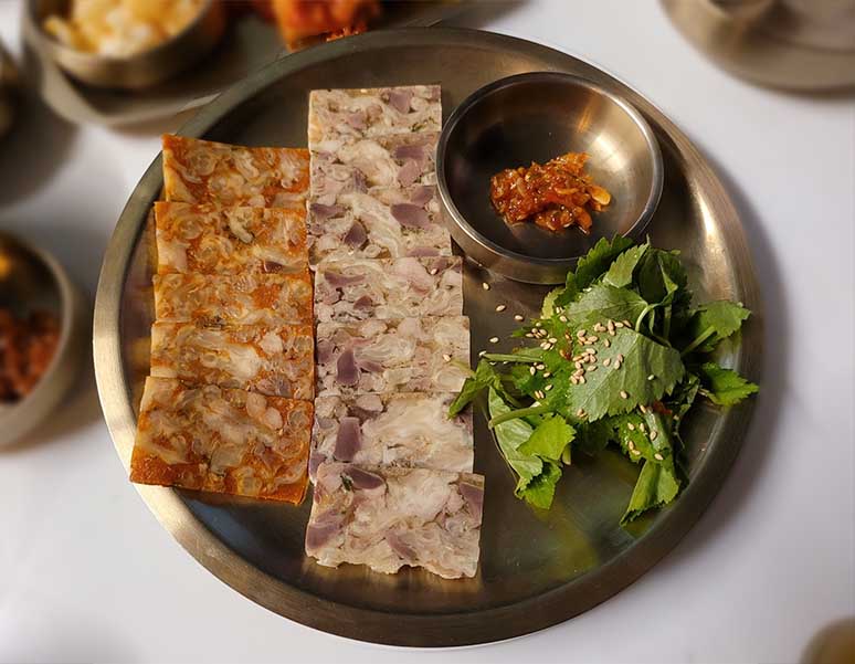 편육이라는 것이 고기를 눌러 만드는 것이라 그런 것 같긴 합니다.