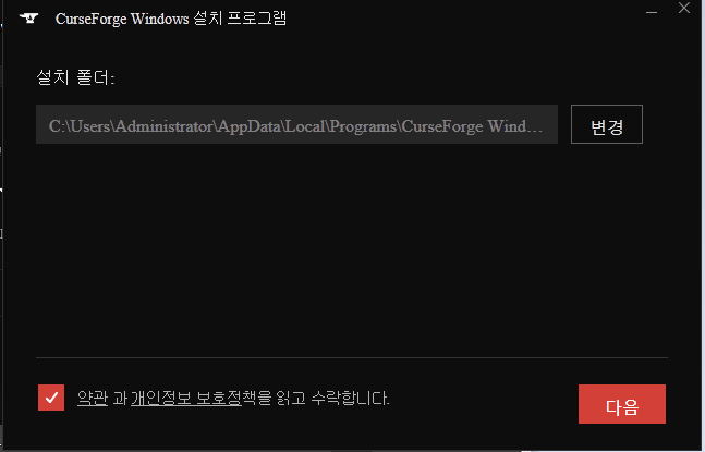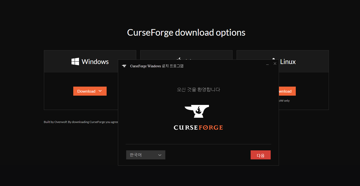 들어간 뒤 위에 있는 CurseForge App를 클릭해주세요.