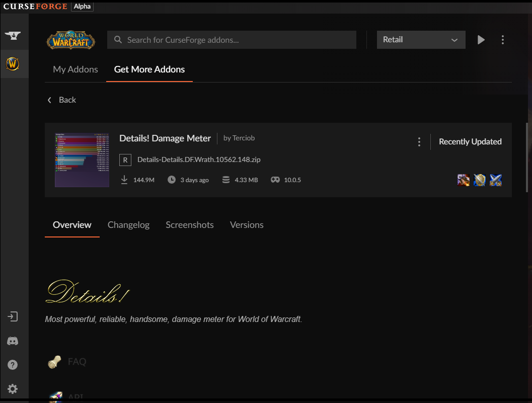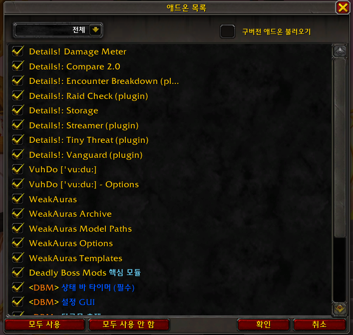 와우를 접속해서 애드온을 확인해보면 이렇게 설치가 되어있는 것을 확인할 수 있습니다.