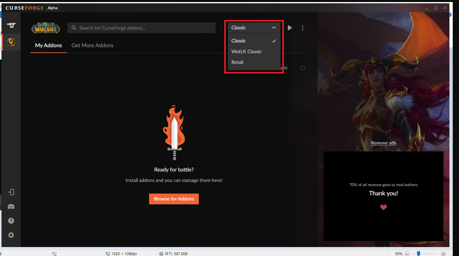 이 때 중요한 것이 오른쪽 위에서 와우인지 와우 클래식인지 확인을 하고 설치 해주셔야합니다.