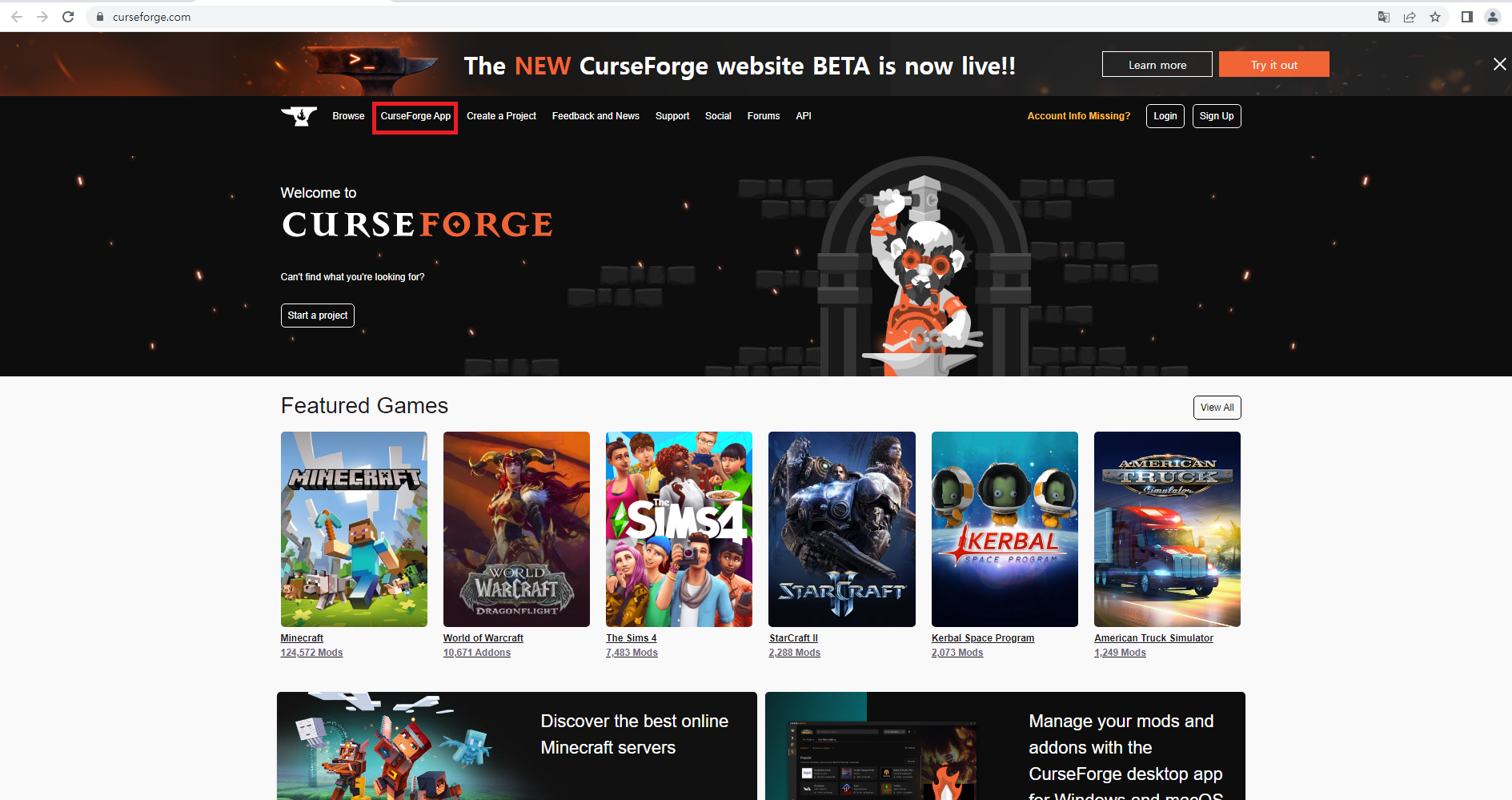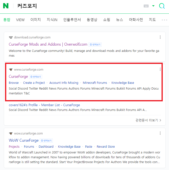 또는 https://www.curseforge.com/ 를 쳐서 들어가주시면 됩니다.