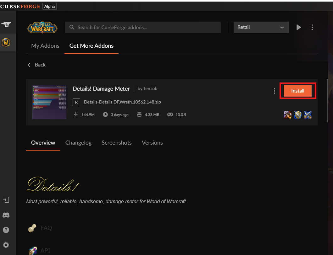 예를들어 가장 많이 설치하는 애드온 중 하나인 데미지 미터기를 설치하고 싶으면
