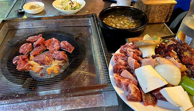 원래는 양이 더 있는데, 사진 찍기 전에 마음이 급해서 이미 조금 불판에 올려놨습니다.