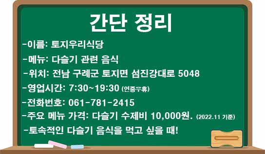 주소: 전남 구례군 토지면 섬진강대로 5048 토지우리식당