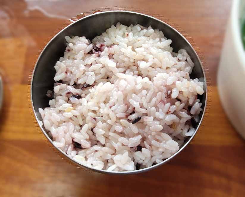 예전에 집에서 먹던 흑미가 섞인 밥이네요.