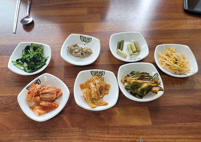 김치와 콩나물 등 7 찬이 나왔습니다.