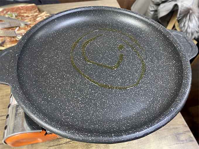 양념되어 있는 고기라 그런지 불판에 기름을 한 바퀴 돌려주셨더라고요~!