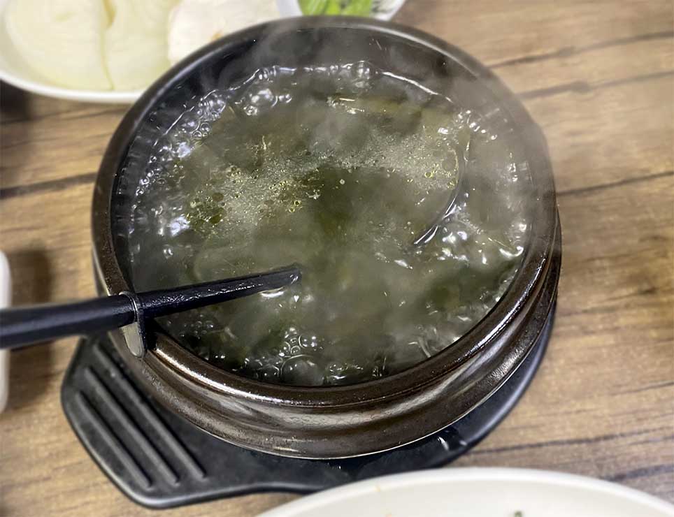 고기를 시키니 따끈한 미역국을 줍니다.