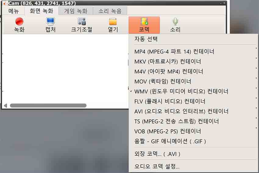 2. 비디오 영상 코덱을 선택해 주면 됩니다.