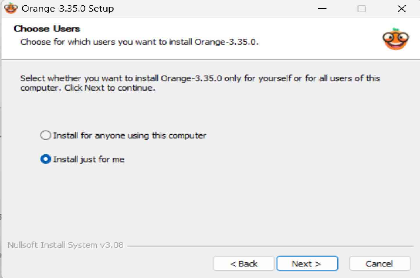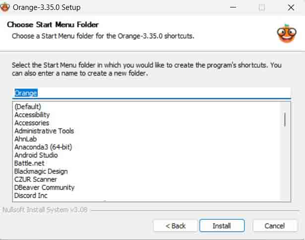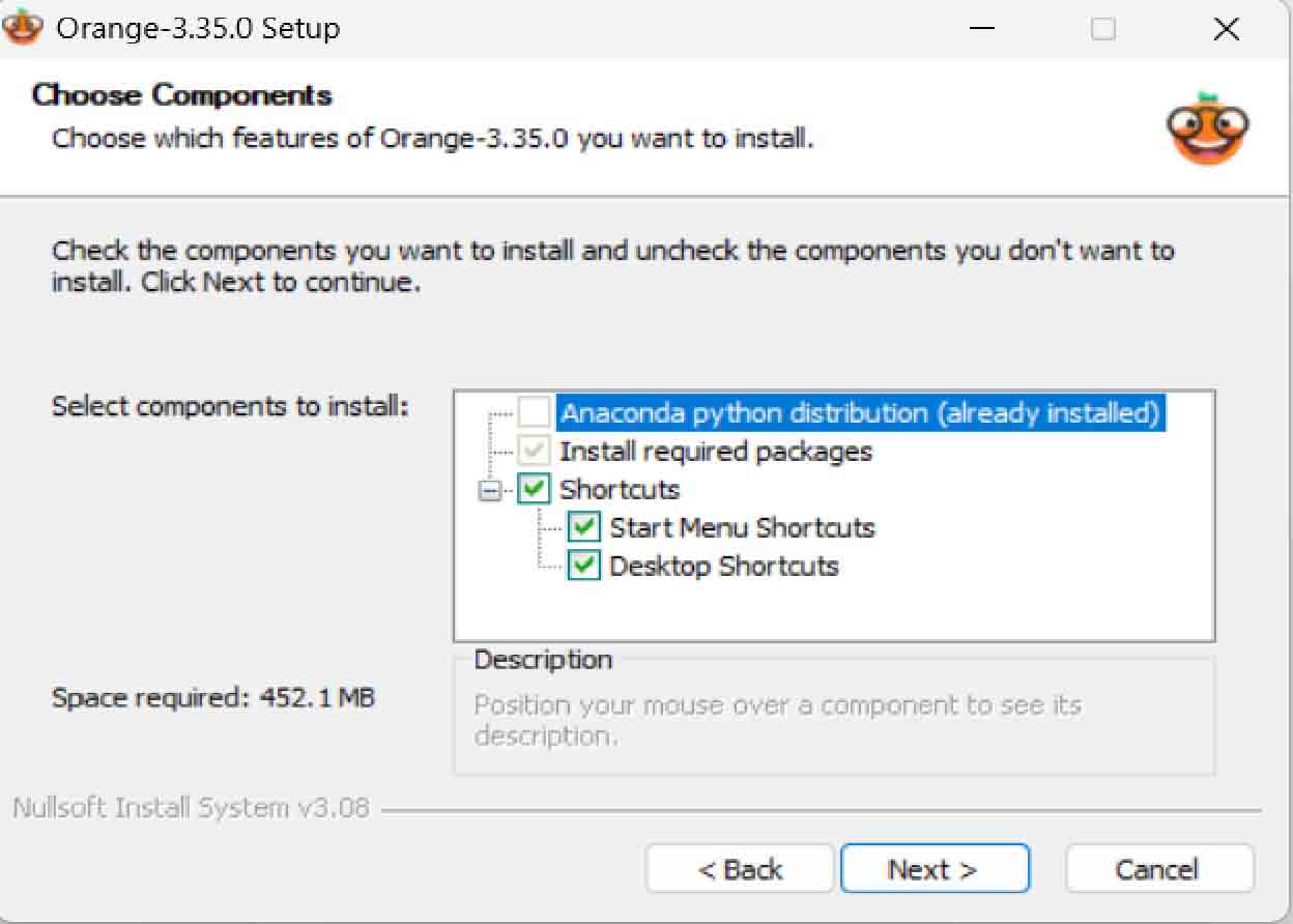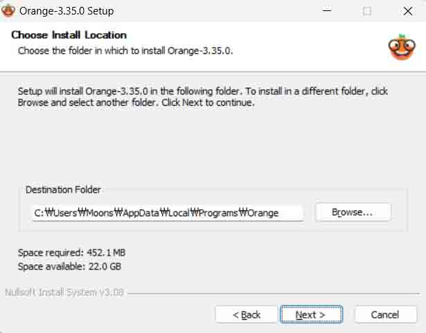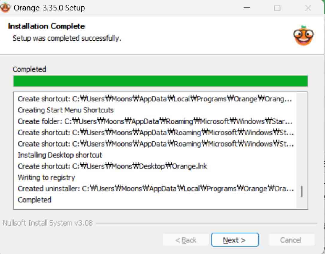 Tip. Orange3를 지우고 다시 설치하는 경우 폴더가 지워지지 않고 남아있어 설치가 안 되는 경우가 있을 수 있습니다. 이 경우에는 직접 폴더를 찾아 지우시거나 다른 경로에 설치하시면 됩니다.