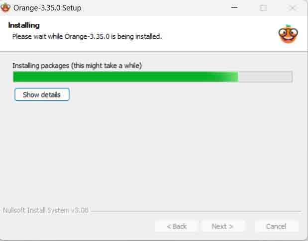 Tip. 생각보다 Orange3 설치가 오래 걸립니다. 설치가 안되고 있는 것 같아도 설치되고 있는 중이니, 너무 걱정 안 하셔도 됩니다. 만약 수업에 활용하실 계획이시면 미리 프로그램 설치를 해두시는 것을 추천합니다.