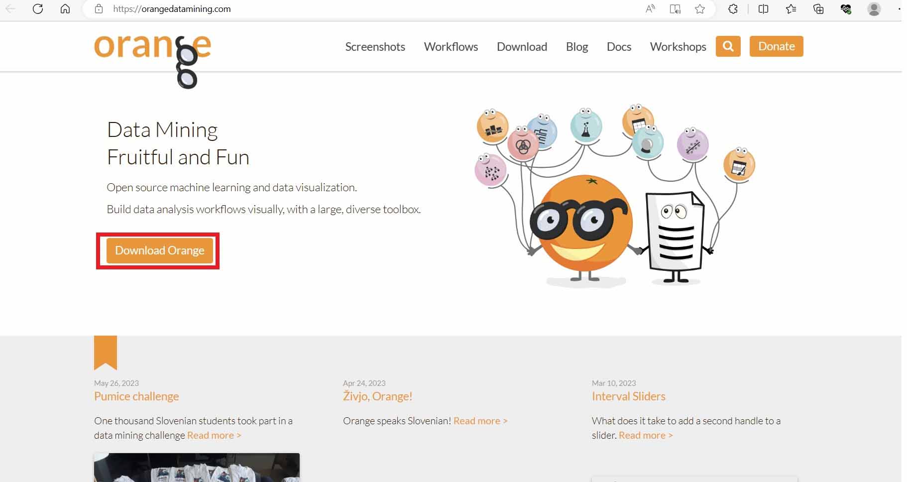 접속하면 다음과 같은 화면이 뜹니다. [Download Orange] 버튼을 클릭하셔서 다운로드하면 됩니다.