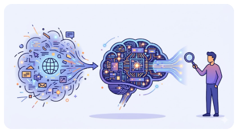 AI는 우리가 생각하는 것처럼 인터넷을 실시간으로 보고 있지 않습니다. 학습할 때 본 내용을 파라미터(parameter)라는 내부 저장소에 압축해서 담아두고, 질문이 들어오면 그 기억만 꺼내서 답합니다.