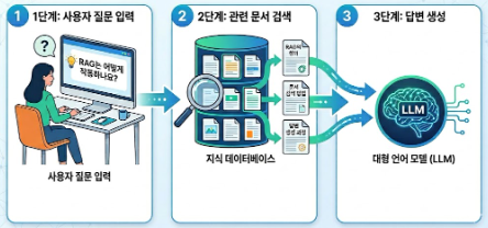 RAG는 세 단계로 작동합니다.