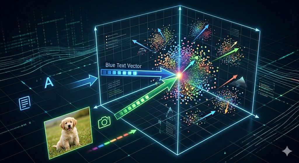 이것을 벡터 정렬 이라고 합니다. 텍스트 벡터와 이미지 벡터가 같은 의미공간에서 서로 맞춰지는 것입니다.