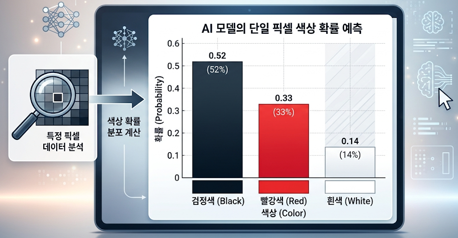 AI는 이 픽셀을 한 번에 그리지 않고 각 픽셀에게 어떤 색일 가능성이 가장 높을지 판단을 합니다